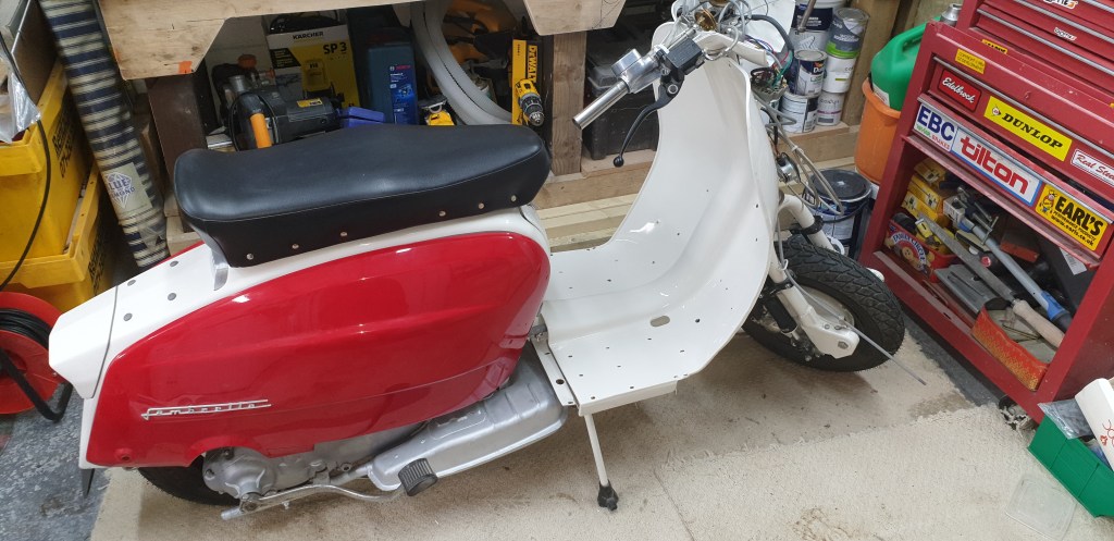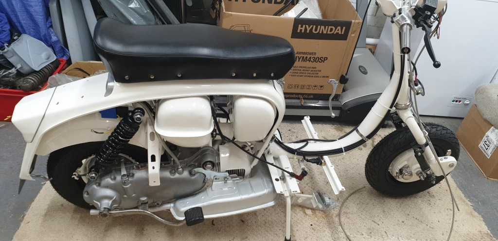 Totally original Spanish Lambretta Eibar LI150 1965. In rust free condition with 38,000 Km on the original speedo. Totally stripped and rebuilt by one of our members with upgraded engine (185cc BGM) and electronic ignition.